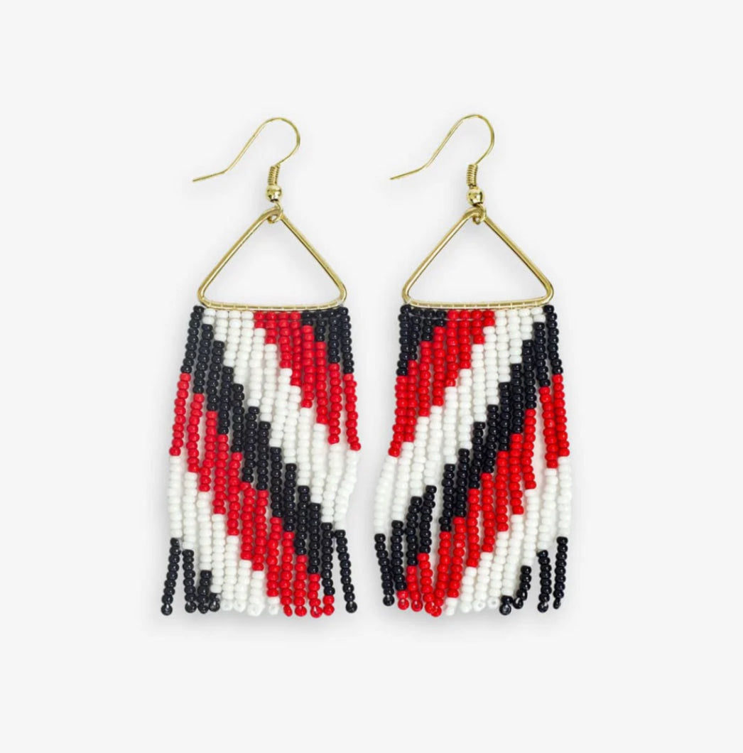 👏 Ink and Alloy Beaded Earrings - The Whitney Game Day Diagonal Stripes Beaded Fringe Earrings feature an eye-catching diagonal striped pattern. Layers of beaded fringe strands dangle effortlessly, adding movement and flair with every cheer and head turn.
