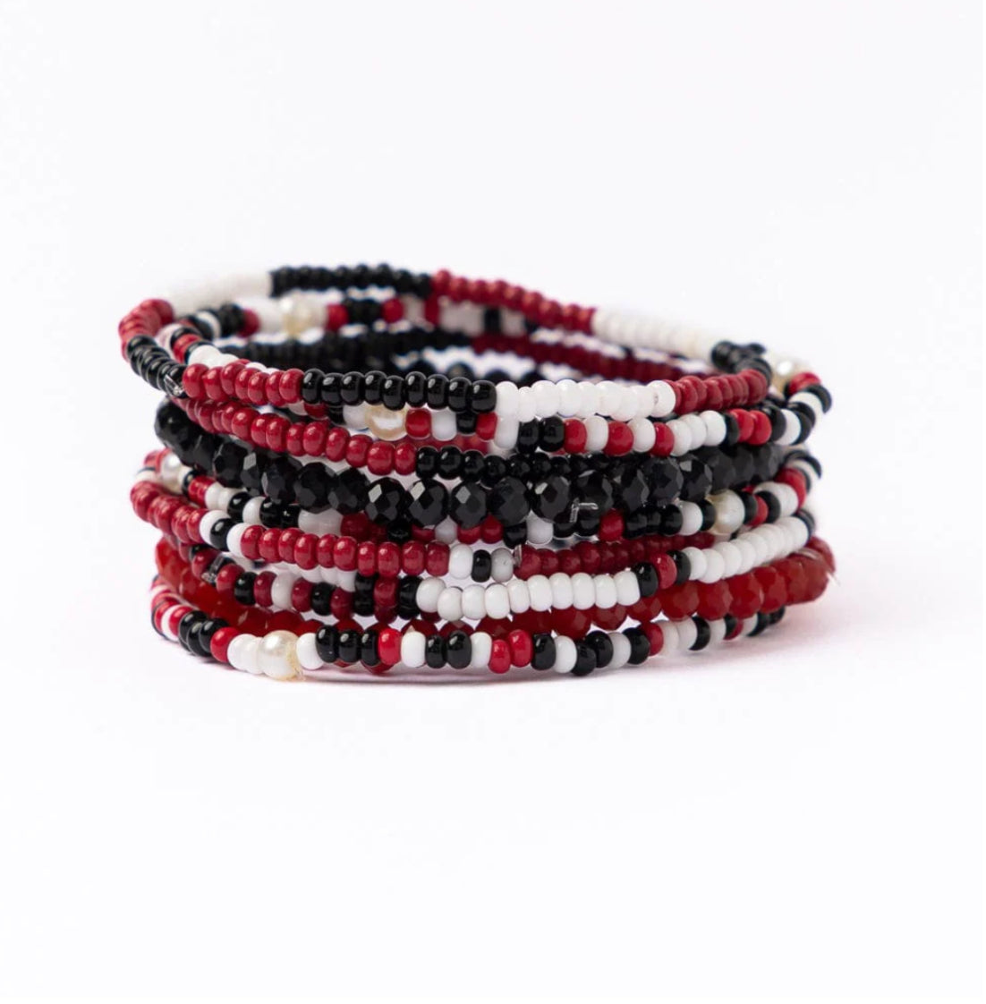 👏 Ink & Alloy Beaded Bracelet - She will show her team spirit when she sports the Game Day Beaded Stretch Bracelet in Maroon & Black beads.